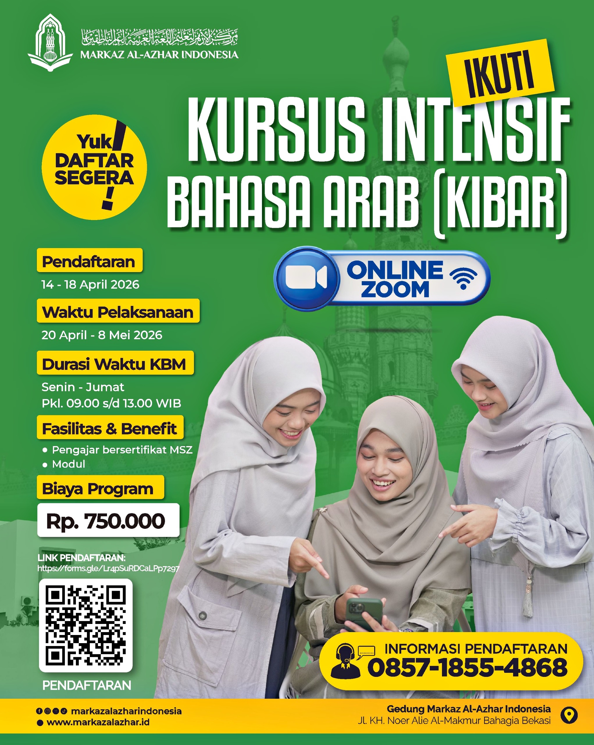 Bekasi — Markaz Al-Azhar Indonesia kembali menghadirkan inovasi program pembelajaran melalui Kursus Intensif Bahasa Arab Online bagi masyarakat yang ingin meningkatkan kemampuan Bahasa Arab secara serius, namun memiliki keterbatasan untuk mengikuti program secara langsung (offline).